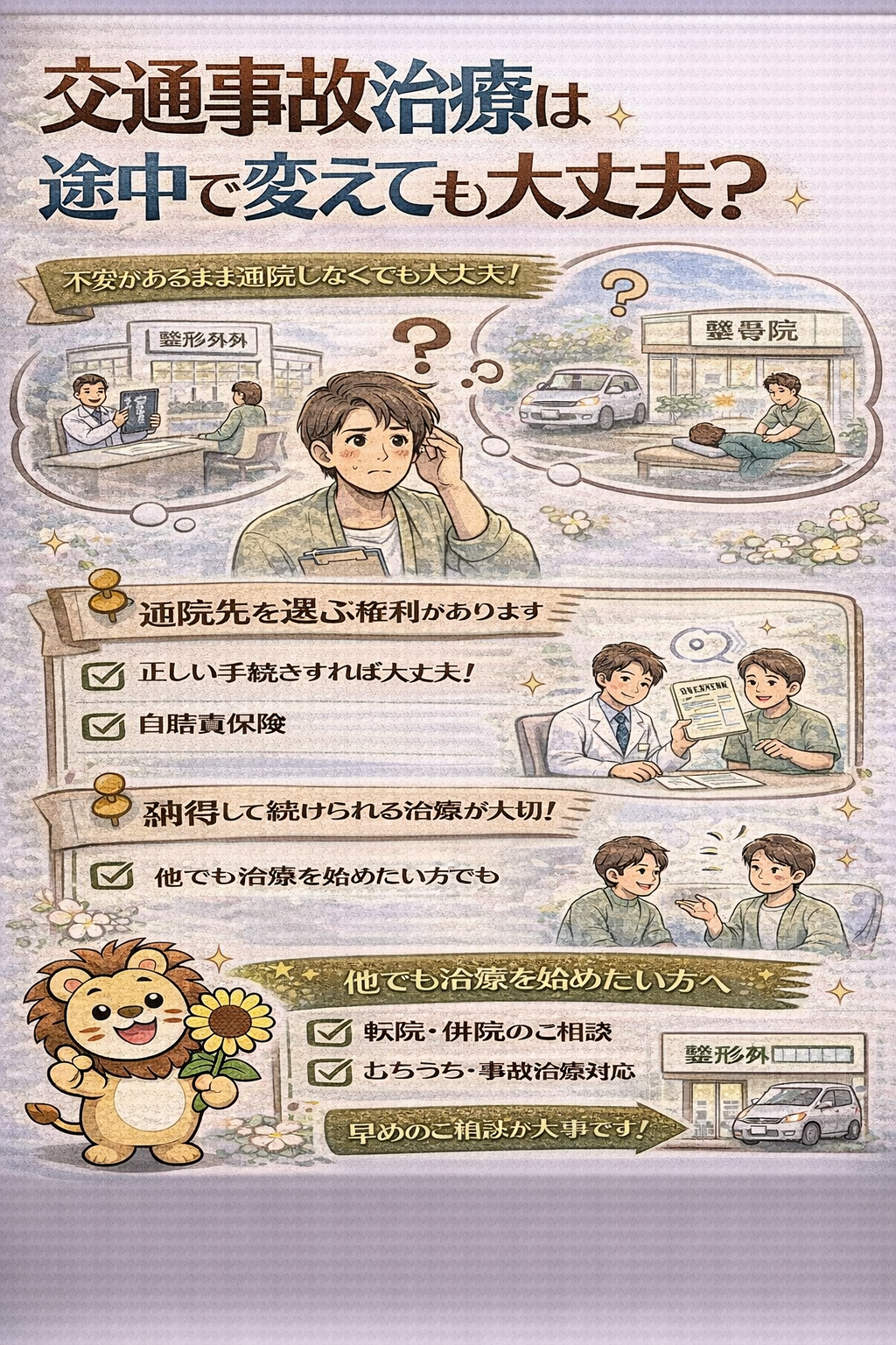 他院から転院する方法|交通事故治療で整骨院を変更するには?